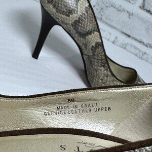 Talbots Leather snakeskin python mid heels classic pump size 8B Made in Brazil