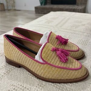 Talbots Leighton Loafer Woven Tasseled Pink Tan Slip On Shoes Womens Size 6