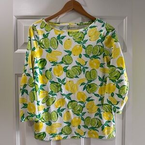 Talbots Lemon and Lime Print Women's 3/4 Sleeve Top size Medium