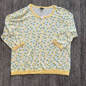 Talbots Lemons and Swiss Polka Dots Cardigan Sweater, NWT, 2X