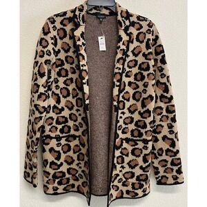 Talbots Leopard Cardigan Knit Blazer Size XS Wool Blend Tan NEW