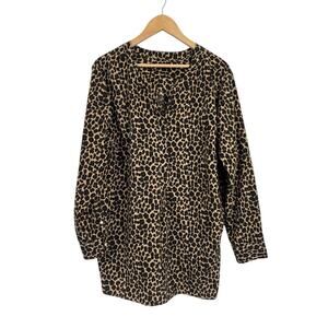 Talbots Leopard Print Button Front Popover Tunic Length Blouse 2X