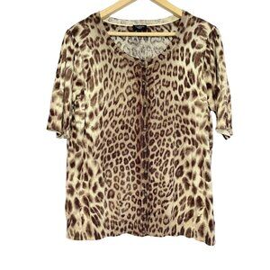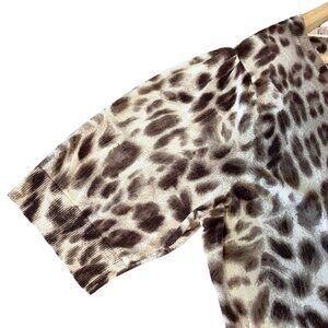 Talbots Leopard Print Sweater Womens Size 1X Brown Knit Elbow Puff Sleeve Office