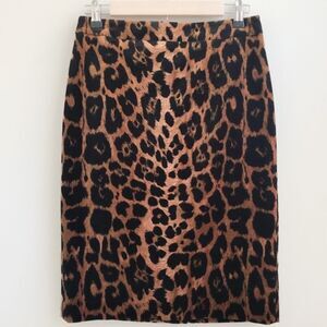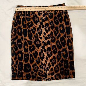 Talbots Leopard Print Velvet Knee Length Pencil Skirt Back Zip 6 Petite
