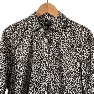 Talbots Leopard Print Blouse Cotton Button Up Shirt Classic Wrinkle Resistant