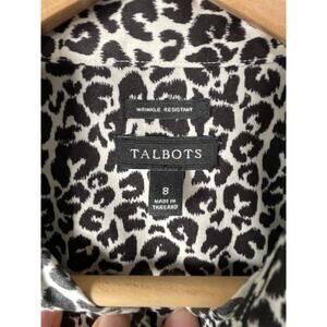 Talbots Leopard Spot Blouse Button Up Wrinkle Resistant Career Shirt Size 8