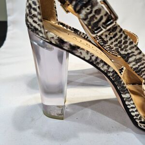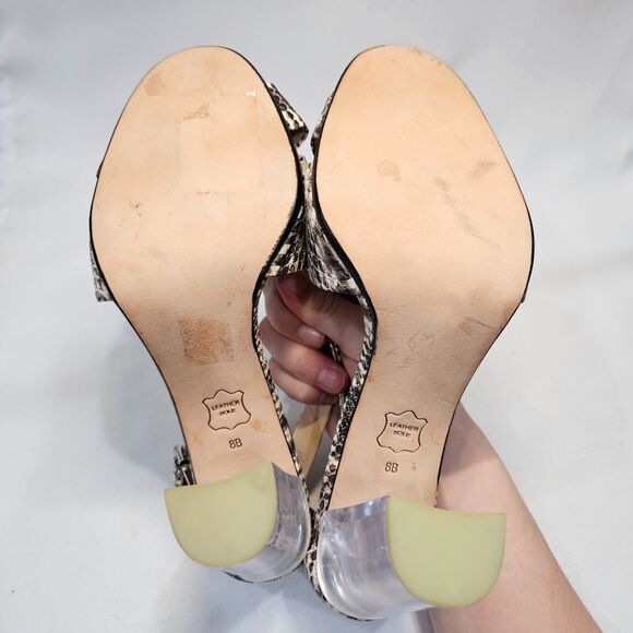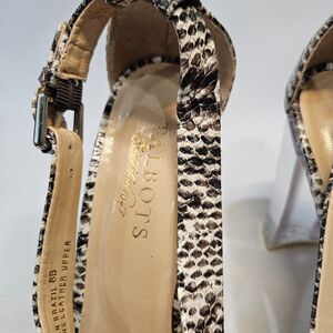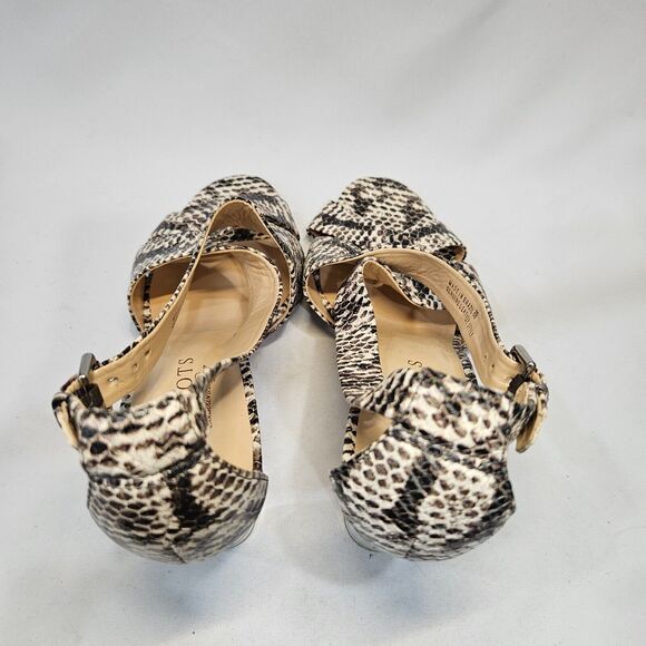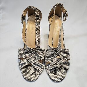 Talbots Libbie Snake Print Leather Chunky Heels Size 8 Black Formal High Heel