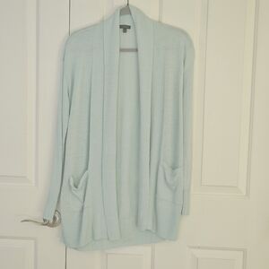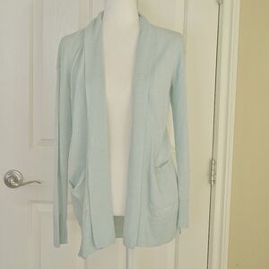 Talbots Light Blue Linen Blend Long Sleeve Open Front Cardigan Sweater Size S