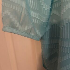 Elegant light blue blouse with geometric design. Perfect for casual or formal wear.