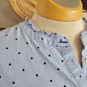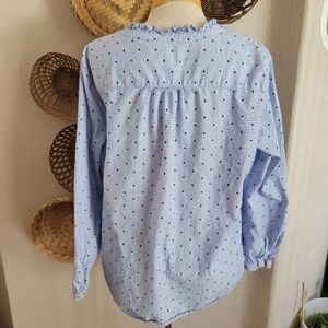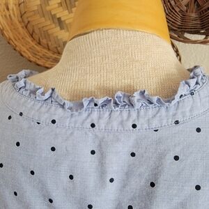 Talbots Light Blue Polka Dot Popover Blouse with ruffle neck