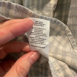 Talbots Light Gray Metallic Plaid Button Down Shirt Size Large