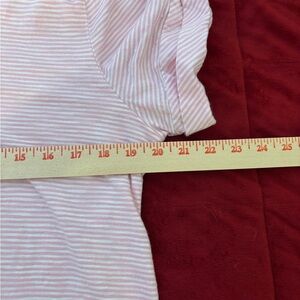 Elegant light pink blouse with subtle stripes. Features short sleeves and a classic collar. Perfect for everyday style.