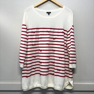 Talbots Lightweight Sweater White Red Stripes Mini Bows 3/4 Sleeves Size 3Xp