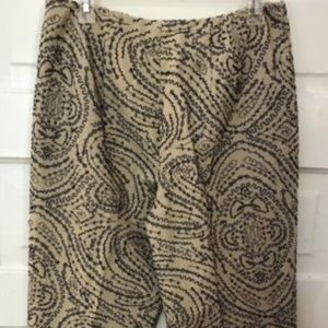 Talbots Lined Navy Embroidered Beige Linen Blend
