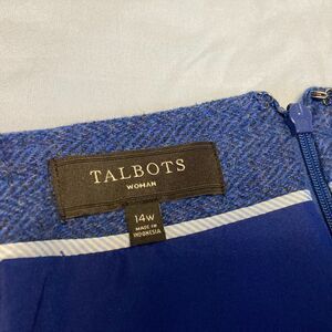Talbots Lined Skirt Plus 14W Herringbone Wool Blend Blue Office Classic Academia