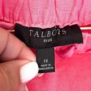 Talbots Linen A-Line Midi Skirt Size 1X Pink Lagenlook Boho Pull On Coastal