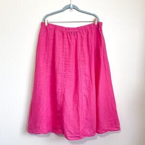 Talbots Plus 100% Linen Lagenlook Boho Minimalist Pink Coastal Pull On A-Line Midi Skirt