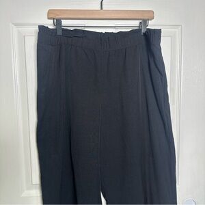 These Talbots Women's XL Petite Linen Pants are a versatile and stylish option for the modern business woman. The solid black color and wide-leg silhouette offer a classic and professional look, perfect for a coastal business setting. With a high-rise waist and flat front design, these pants provide a comfortable and flattering fit. The pull-on closure and machine washable material make them easy to care for, while the breathable polyester fabric ensures comfort throughout the day. Ideal for travel, casual wear, or a day at the office, these pants are a must-have for any fashion-forward professional. Career, coastal, lagenlook