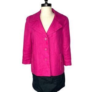 Talbots Linen Blazer 3 Button Pockets Bright Pink Lined 4 EUC