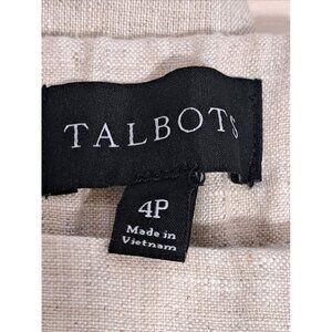 Talbots Linen Blend Cropped Pants Size 4P Beige Neutral Pull On Stretch