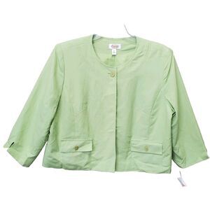 Talbots Linen Blend One-Button Green Long Sleeve Blazer Size 18 NWT