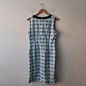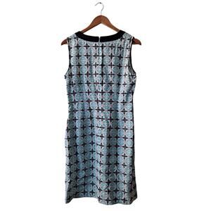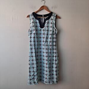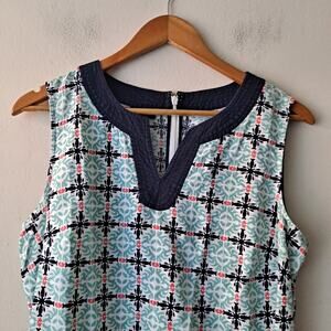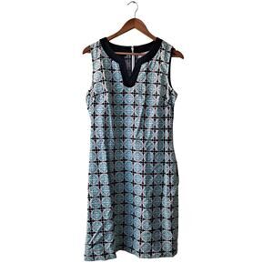 Talbots Linen Blend Sleeveless Shift Dress Geometric Teal Blue Womens Size 8