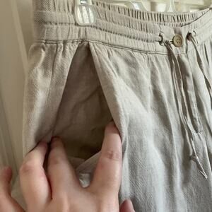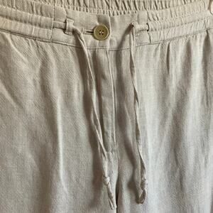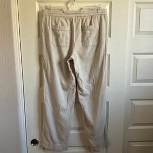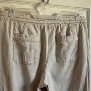 Talbots linen blend straight leg full length tan pants. These have pockets and a drawstring.