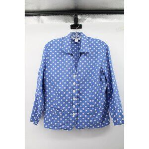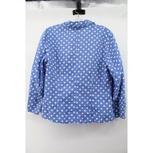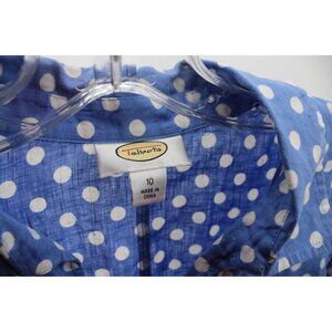 Talbots Linen Blouse Blue Polka Dot Size 10 94023 3/4 Sleeve