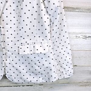 Talbots blazer, polka dot jacket, linen blazer, cotton blazer, women’s fashion, preppy style, summer jacket, chic outerwear, white blazer, classic wardrobe, trendy office wear, casual elegance.
