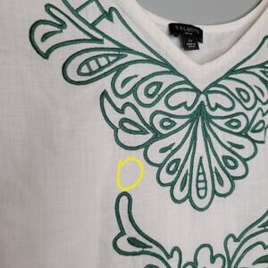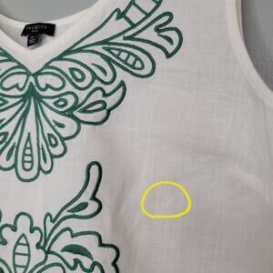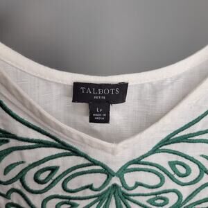 Talbots Linen Cotton Tank Top Women's Size L Petite White Green Summer Coastal