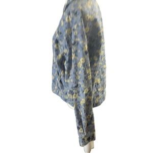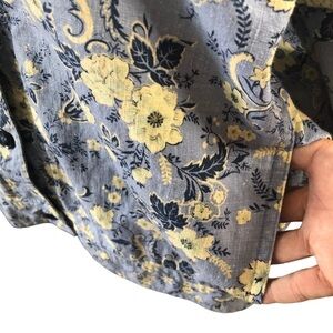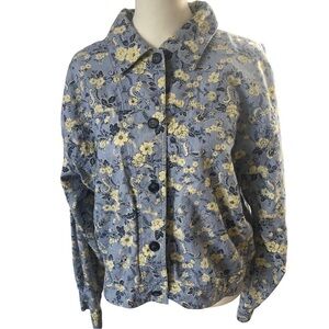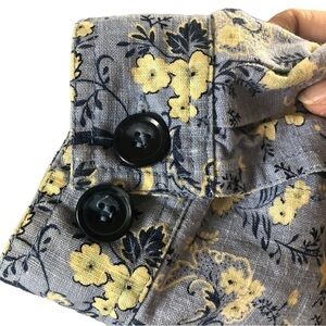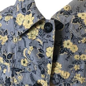 Talbots Linen Jacket Women L Light Blue white Floral Front Button