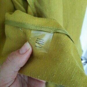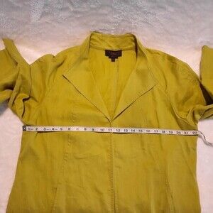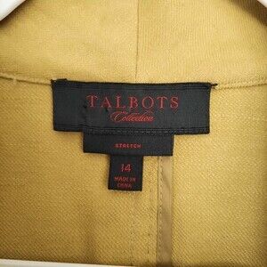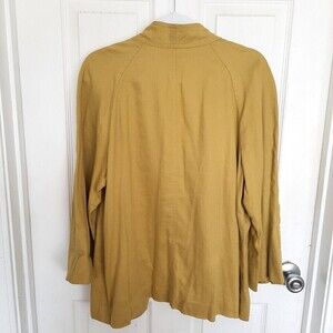 Talbots Linen Jacket Womens size 14 Open Front Stretch Lagenlook Greenish Yellow