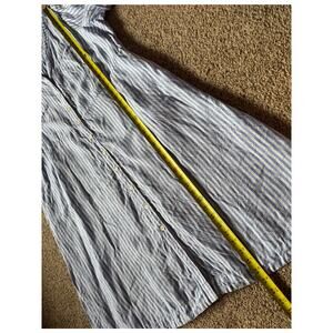 Talbots Linen Shirt Dress Midi Striped Button Front Minimalist Lagenlook Pockets