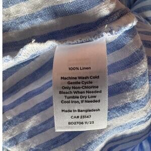 Talbots Linen Shirt Dress Midi Striped Button Front Minimalist Lagenlook Pockets Plus Petites