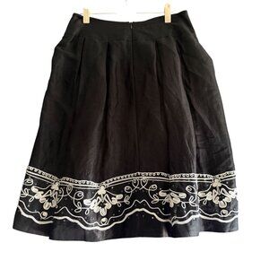 Talbots Linen Silk Floral Embroidered Sequins Pleated Skirt Women SZ 6 Black White