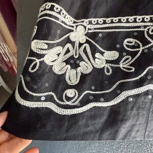Talbots Linen Silk Floral Embroidered Sequins Pleated Skirt SZ 6 Black White