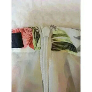 Talbots Linen Skirt Womens 6 Petite Floral Pleated Lined White Red Office Casual