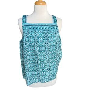 Talbots Linen Square Neck Top Sleeveless Blue Boho Beachy Coastal Large Petite