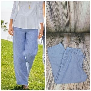Talbots blue linen stripe easy drawstring pants. Linen cotton blend. Front and back pockets. In great pre-owned condition. Fast shipper and packaged with care.