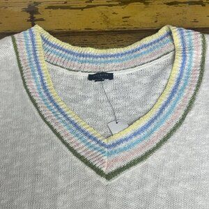 Talbots Linen Sweater Vest Rainbow Stripe V-Neck Sz XL PETITE Lightweight