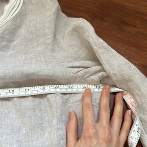 Talbot Linen V Neck 3/4 Sleeve Tunic Blouse Large Taupe Gray