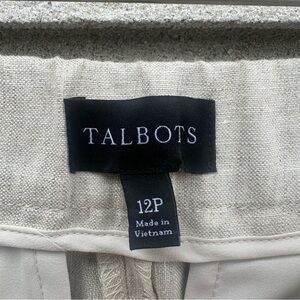 Talbots Linen Wide Leg Crop Pant Trouser Coastal Minimalist Neutral Oatmeal
