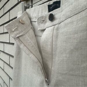 Oatmeal beige color. Slant pockets at hips. Welt pockets on back. Zip fly, double button closure. 100% linen. Size 12 Petite. Excellent used condition.