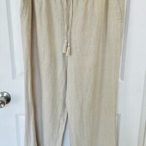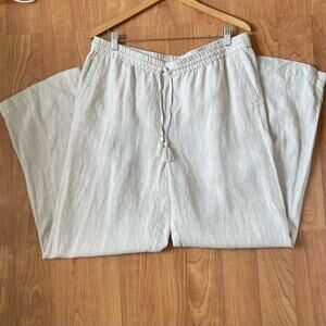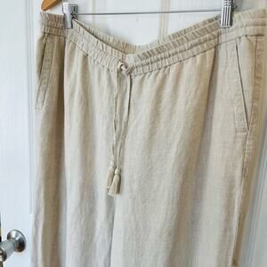 Talbots 100% Linen Wide-Leg Pant/Trousers in Woman’s Size 16X30 Leg Opening (10”) in Natural Cream. Drawstrings make it adjustable. Gently used condition