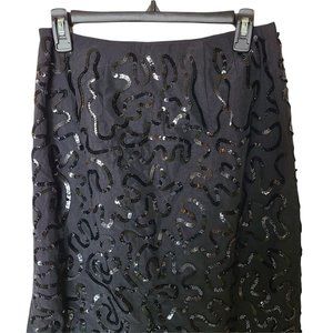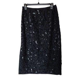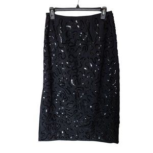 Talbots Long Skirt Black Sequin Swirl Detail Size 6 Lined