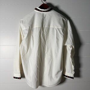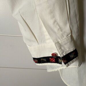 Talbots Long Sleeve Button Down Cream with Tartan Plaid Trim & Buttons Size Med
