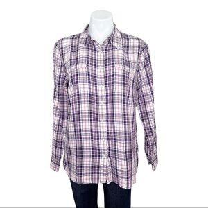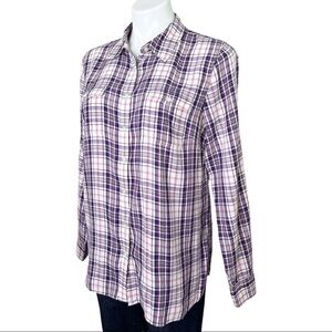 Talbots Long Sleeve Button Down Purple Plaid Shirt M