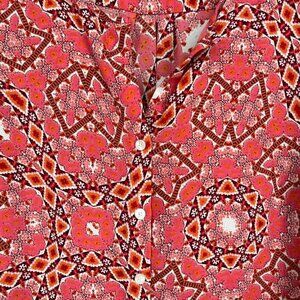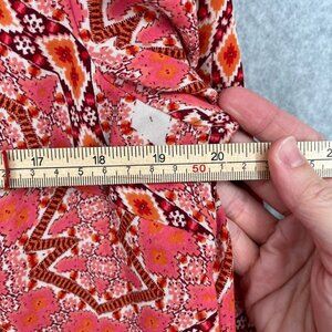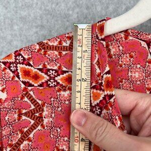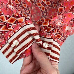 Talbots Long Sleeve Chiffon Blouse Top Size M Pink White Geometric Boho Barbie