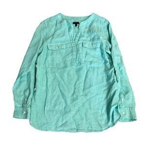 Talbots Long Sleeve Linen Button Front Top Size Medium