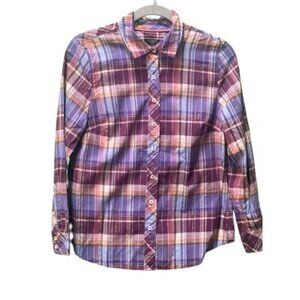 Talbots Long Sleeve Madras Plaid Cotton Blend Metallic Thread Shirt Size S/P